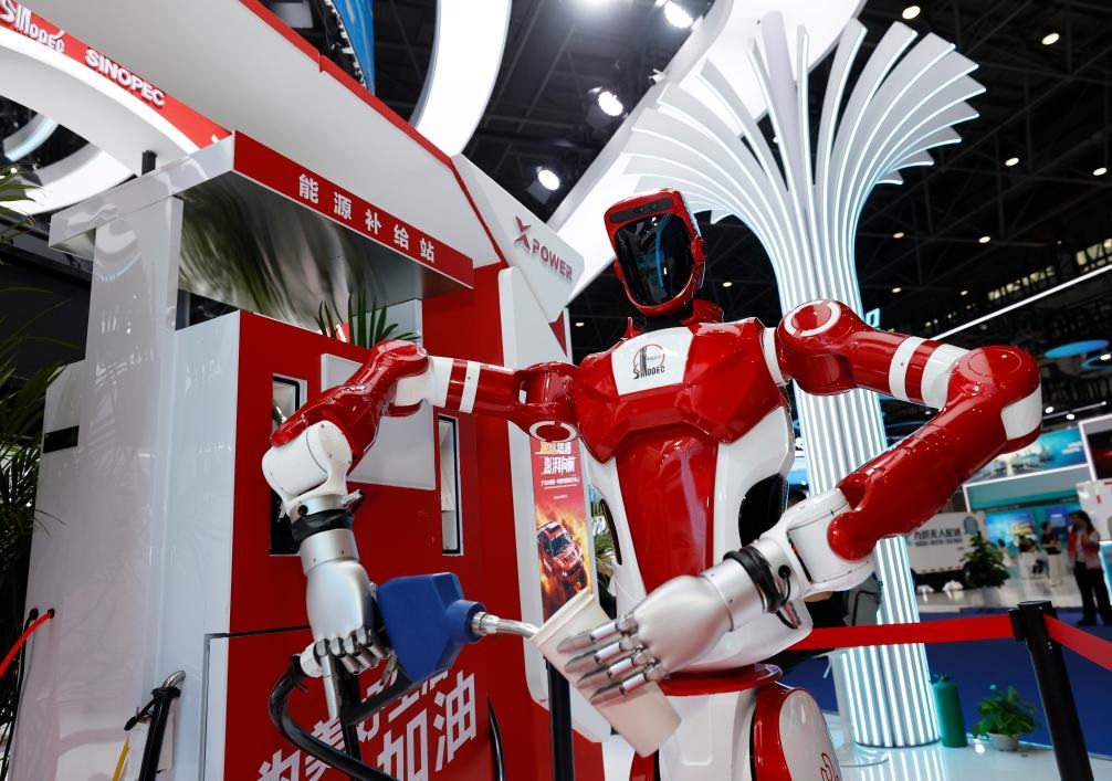 شفا – هايكو 15 أبريل 2026 (شينخوا) في الصورة الملتقطة يوم 14 أبريل 2026، روبوت للشركة الصينية للبتروكيماويات يجري محاكاة للتزويد بالوقود خلال الدورة السادسة من معرض الصين الدولي للمنتجات الاستهلاكية المقامة في مدينة هايكو، حاضرة مقاطعة هاينان بجنوبي الصين.