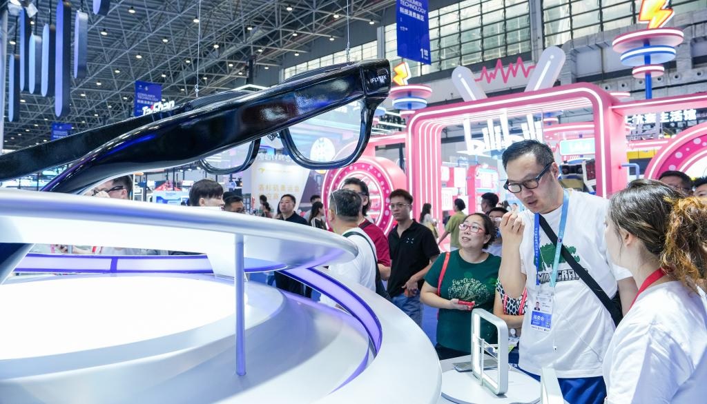 شفا – هايكو 15 أبريل 2026 (شينخوا) في الصورة الملتقطة يوم 14 أبريل 2026، زوار يتعرفون على نظارات الذكاء الاصطناعي لشركة “آي فلايتك” خلال الدورة السادسة من معرض الصين الدولي للمنتجات الاستهلاكية المقامة في مدينة هايكو، حاضرة مقاطعة هاينان بجنوبي الصين.