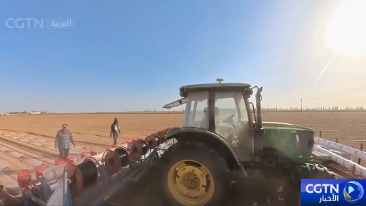 شفا - CGTN - مع ارتفاع درجات الحرارة مؤخرا، تسارع منطقة آكسو بجنوب غربي منطقة شينجيانغ الويغورية ذاتية الحكم بشمال غربي الصين في استغلال الفترة الزراعية المناسبة، باستخدام الطرق الآلية لدفع زراعة القطن بكفاءة عالية.