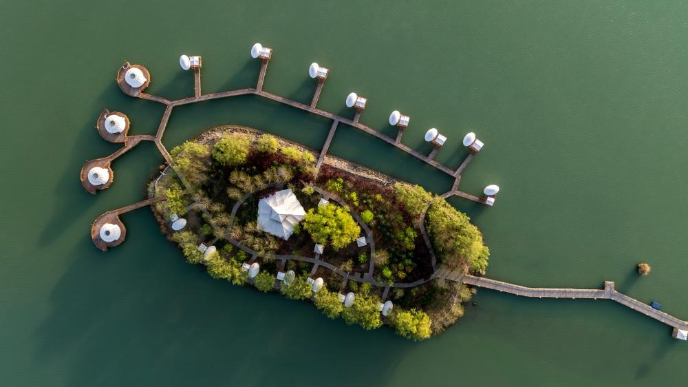 شفا – يينتشوان 20 أبريل 2026 (شينخوا) في الصورة الملتقطة يوم 18 أبريل 2026، جانب من منطقة شاهو المنظرية في مدينة شيتسويشان بمنطقة نينغشيا ذاتية الحكم لقومية هوي في شمال غربي الصين.