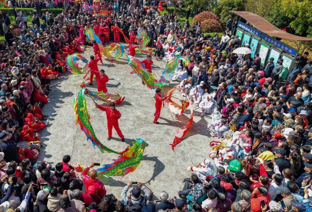 شفا – بكين 20 أبريل 2026 (شينخوا) في الصورة الملتقطة يوم 19 أبريل 2026، أناس يحتفلون بمهرجان سانيويهسان في مدينة تايتشو بمقاطعة جيانغسو في شرقي الصين. ويعد مهرجان سانيويهسان مهرجانا تقليديا يُحتفل به في اليوم الثالث من الشهر القمري الثالث من قبل مجموعات إثنية متنوعة في الصين، والذي يصادف 19 أبريل الجاري.