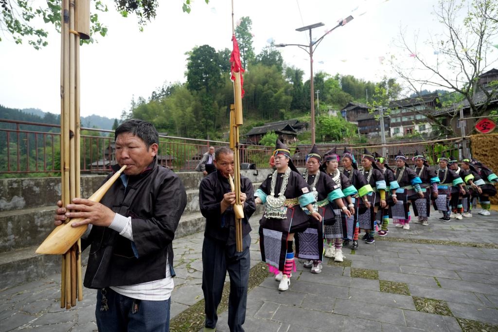 شفا – بكين 20 أبريل 2026 (شينخوا) في الصورة الملتقطة يوم 19 أبريل 2026، أناس يحتفلون بمهرجان سانيويهسان في محافظة رونغجيانغ بمقاطعة قويتشو في جنوب غربي الصين. ويعد مهرجان سانيويهسان مهرجانا تقليديا يُحتفل به في اليوم الثالث من الشهر القمري الثالث من قبل مجموعات إثنية متنوعة في الصين، والذي يصادف 19 أبريل الجاري.