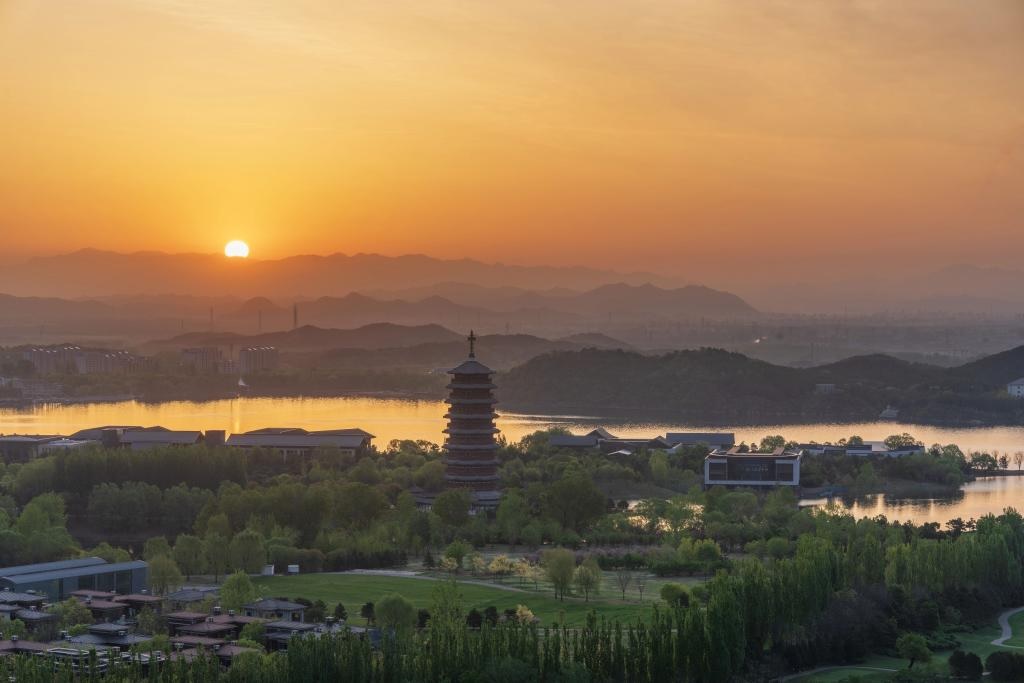 شفا – بكين 22 أبريل 2026 (شينخوا) في الصورة الملتقطة يوم 21 أبريل 2026، نور الصباح يضيء سماء العاصمة الصينية بكين.