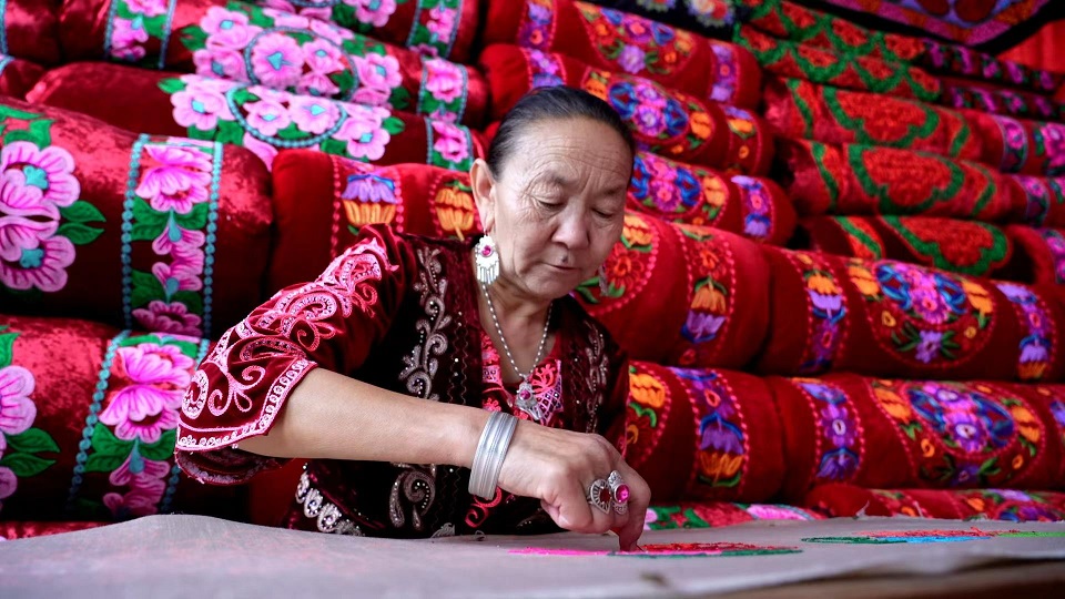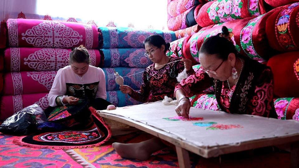 فن التطريز لقومية القرغيز بونسو هو أيضًا من التراث الثقافي غير المادي على المستوى الوطني. وخلال السنوات الأخيرة، اعتمدت بلدة بوزيدون لقومية القرغيز على نموذج تشغيل يقوم على “التعاونية + الأسر الريفية + الطلبات”مما مكن من توريث هذا الفن التقليدي وتطويره باستمرار. ومن خلال نموذج “السياحة + تجربة التراث غير المادي” ساعدت السكان المحليين على وضع أرجلهم على طريق الثراء والازدهار.