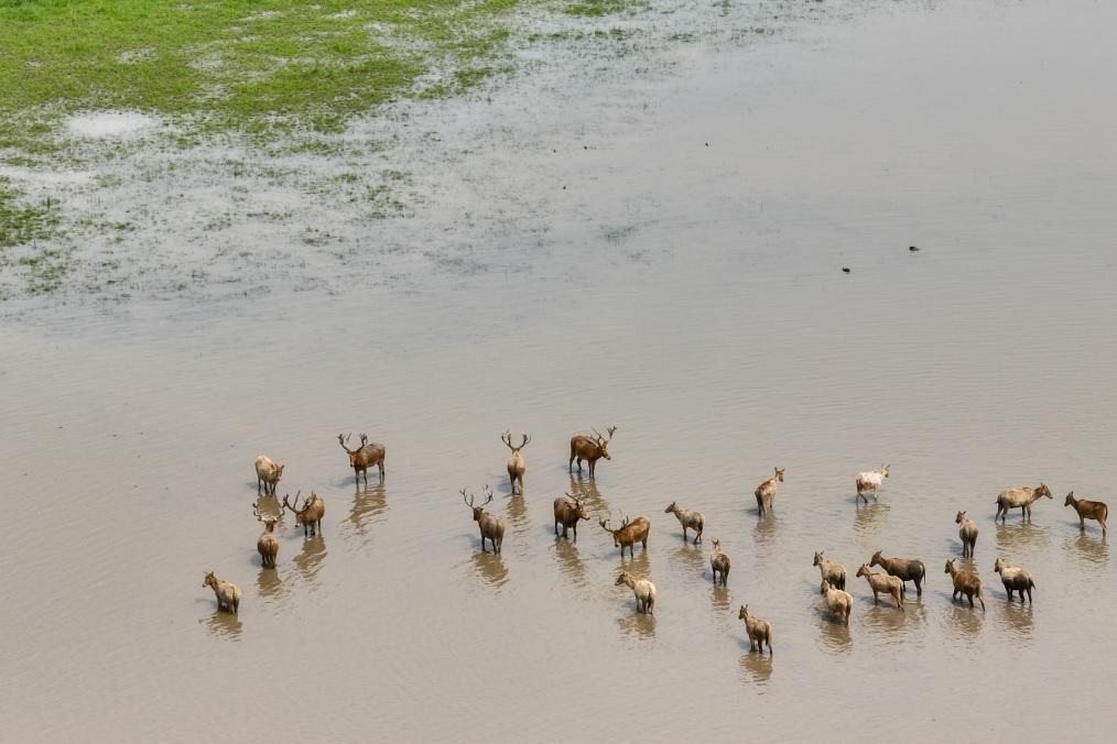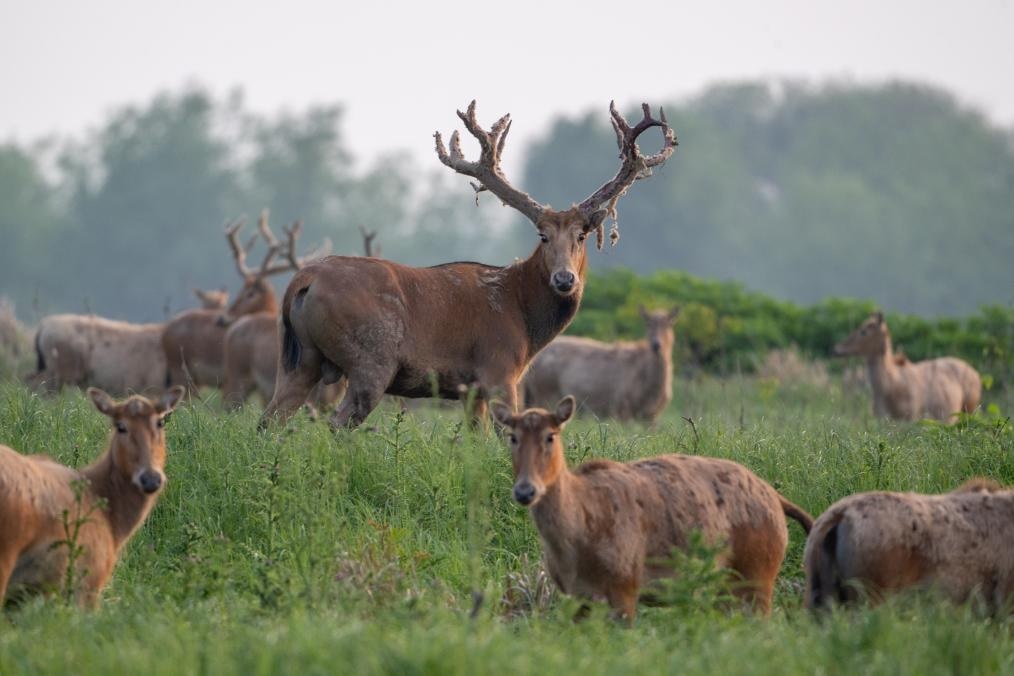 شفا – شيشو 25 أبريل 2026 (شينخوا) في الصورة الملتقطة يوم 23 أبريل 2026، غزلان ميلو في محمية شيشو الطبيعية الوطنية لغزلان ميلو في مقاطعة هوبي بوسط الصين.